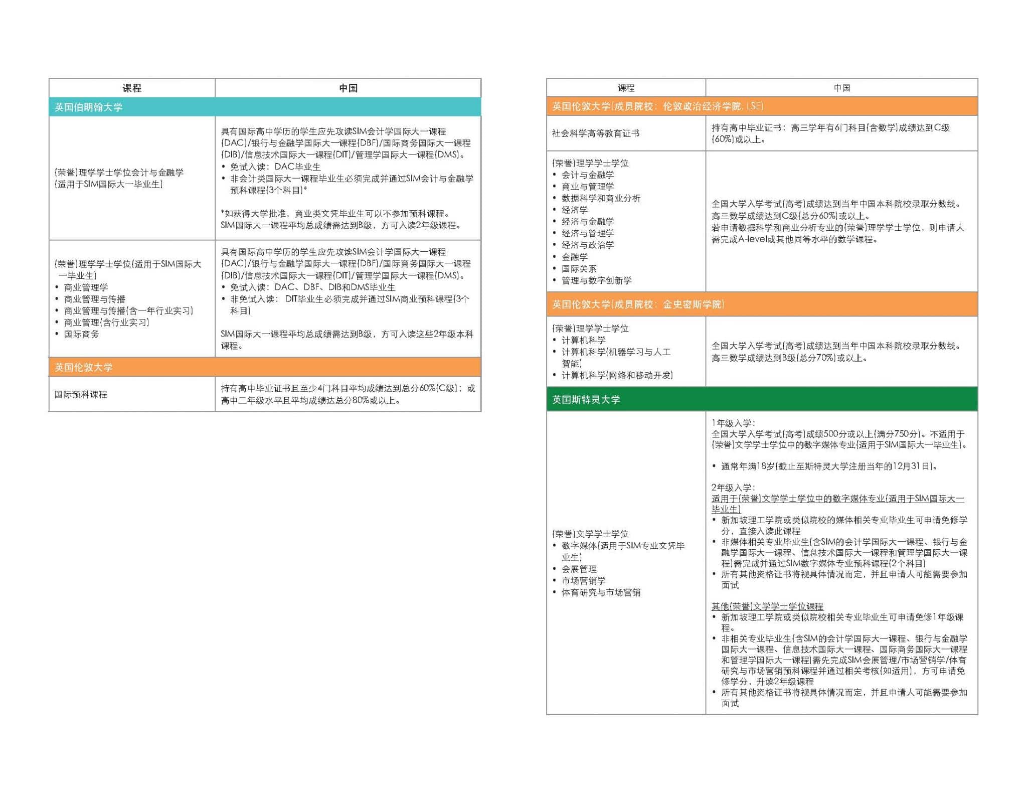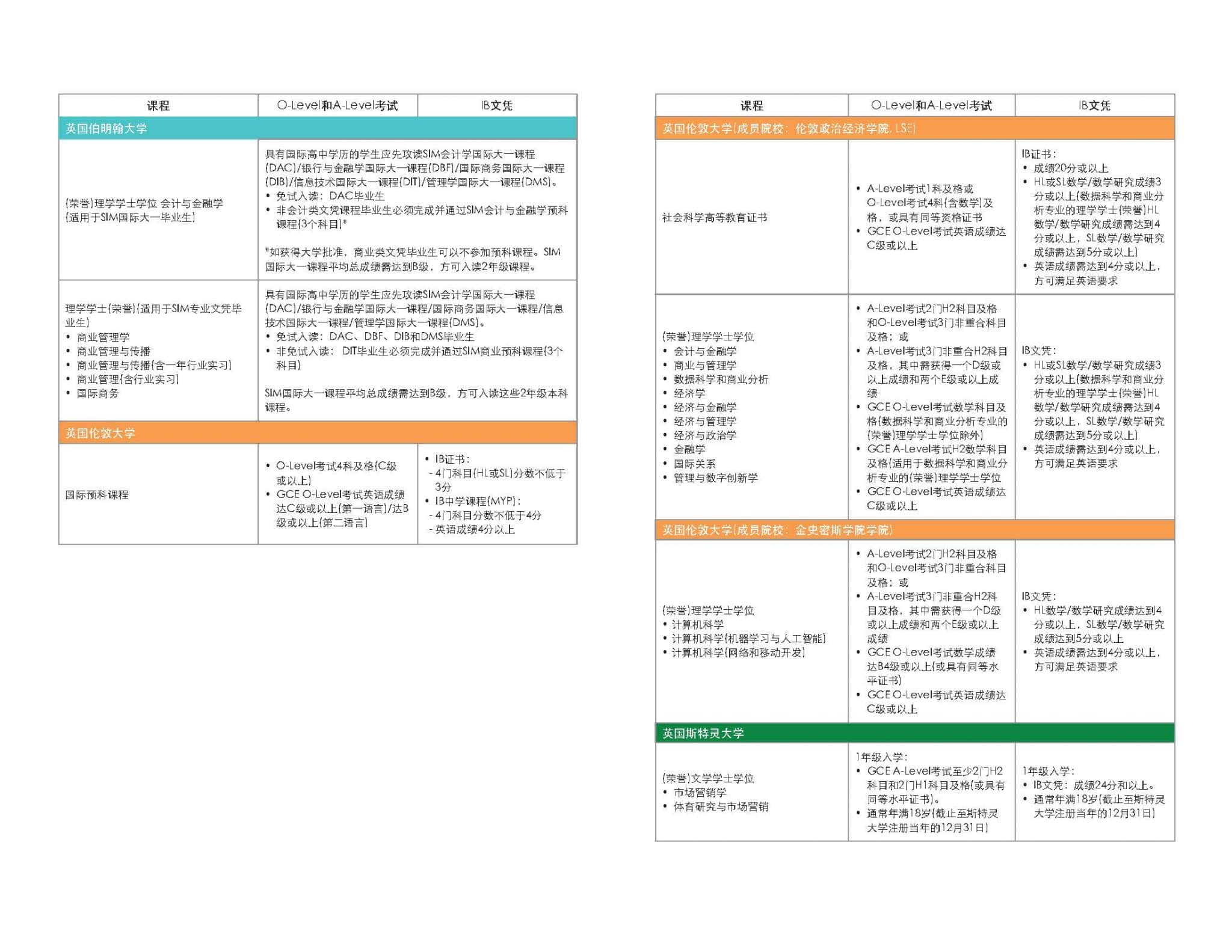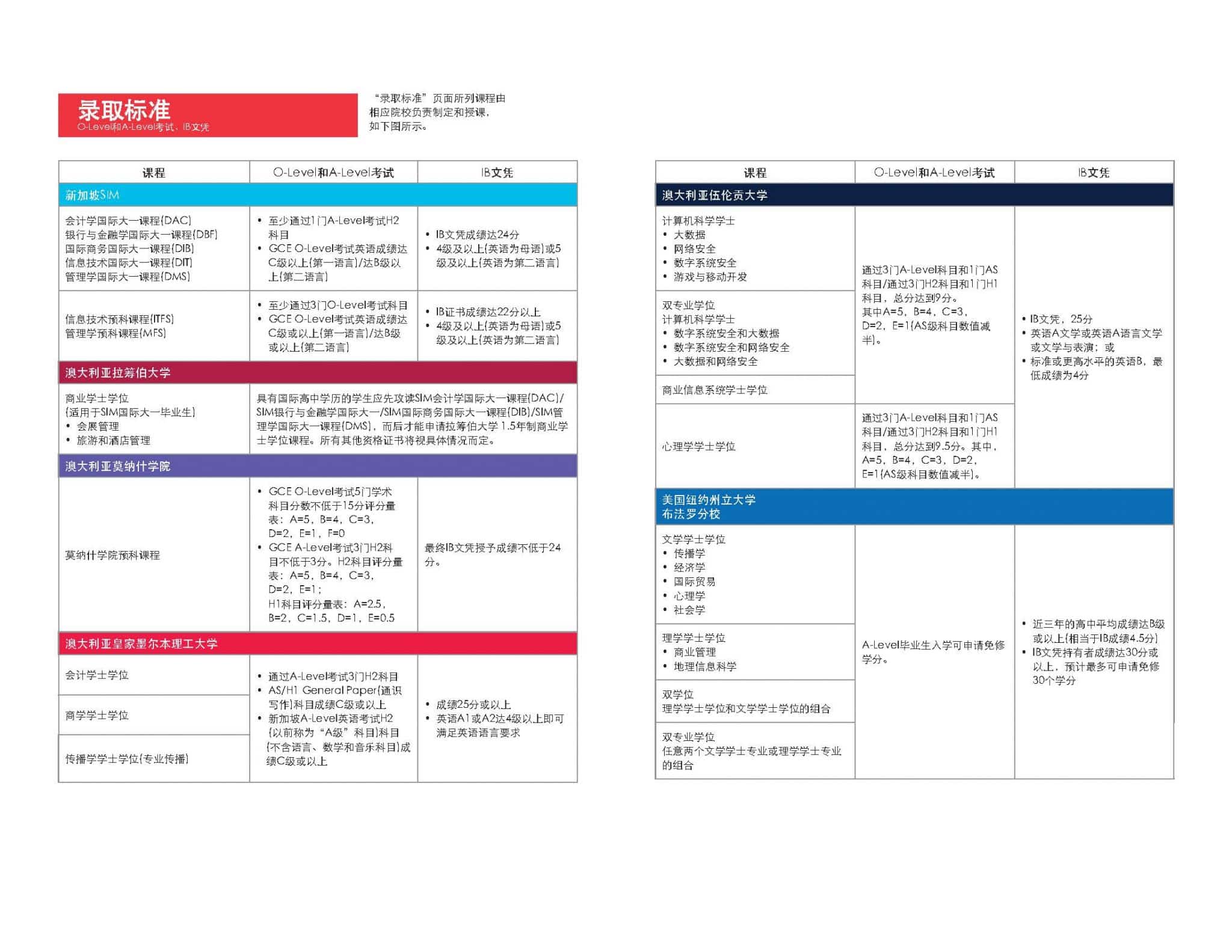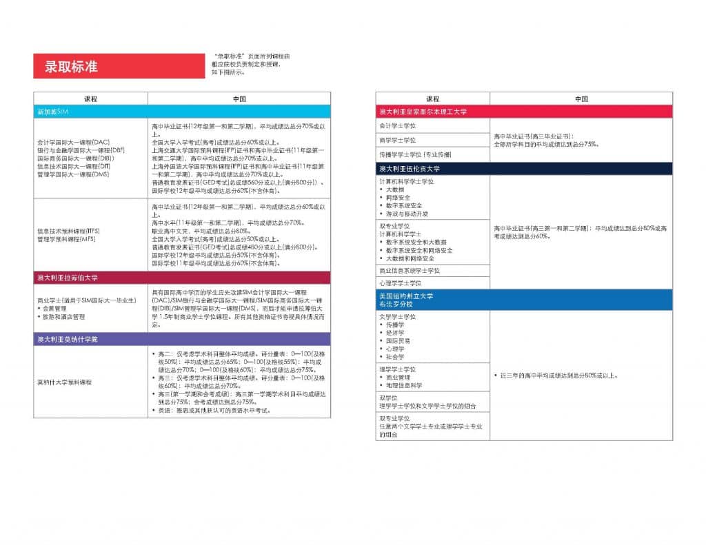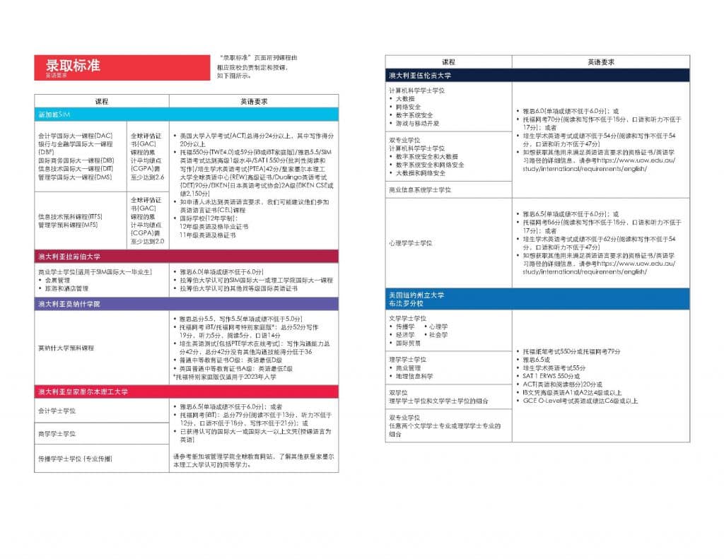 新加坡管理学院(SIM)、伍伦贡大学、伦敦大学、伯明翰大学及皇家墨尔本理工大学等大学,均设有不同的海外留学入学申请成绩、学历或语言要求。学生可以针对感兴趣的课程或大学,按照以下官方申请标准表格,报读符合入学标准的学校。