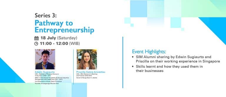 Ever dream of being an entrepreneur but not sure how can you get there? Let our alumni share their experiences! Event Highlights: - SIM Alumni sharing by Edwin Sugiaurto and Priscilla on their working experience in Singapore - Skills learnt and how they used them in their businesses
